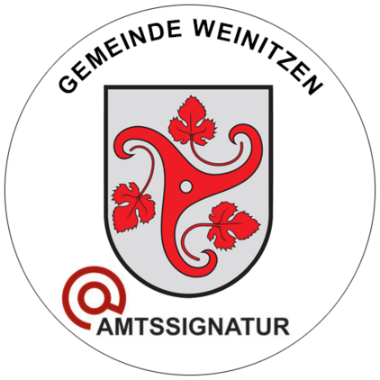 Die von der Gemeinde Weinitzen im elektronischen Wege amtlich gefertigten Dokumente weisen die Amtssignatur der Gemeinde Weinitzen auf.